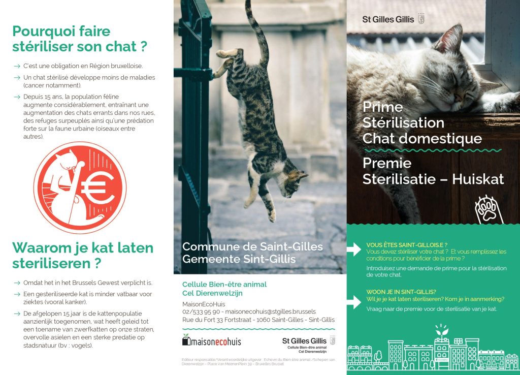 Heeft u een huiskat? Wilt u hem laten steriliseren ? De gemeente Sint-Gillis kent een premie toe voor de sterilisatie van huiskatten