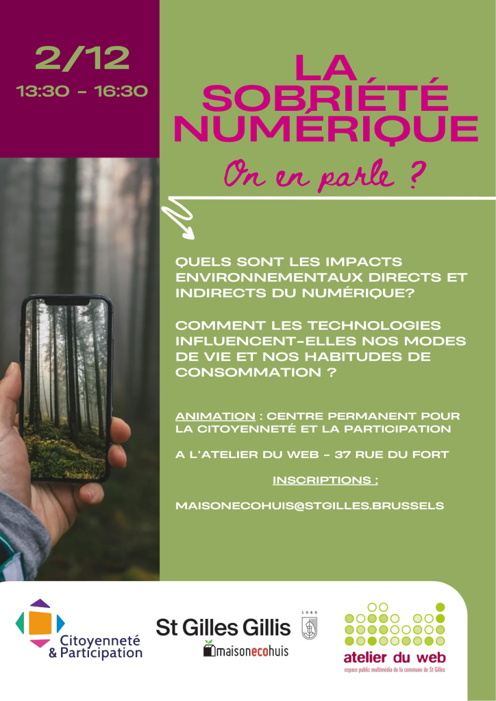 Nous vous invitons à participer à un atelier interactif à l’Atelier du Web, organisé par le CPCP – Centre Permanent pour la Citoyenneté et la Participation pour explorer les enjeux de la sobriété numérique. Ensemble, nous aborderons les impacts environnementaux directs et indirects du numérique, et nous questionnerons notre rapport aux technologies : comment influencent-elles nos modes de vie et nos habitudes de consommation ?